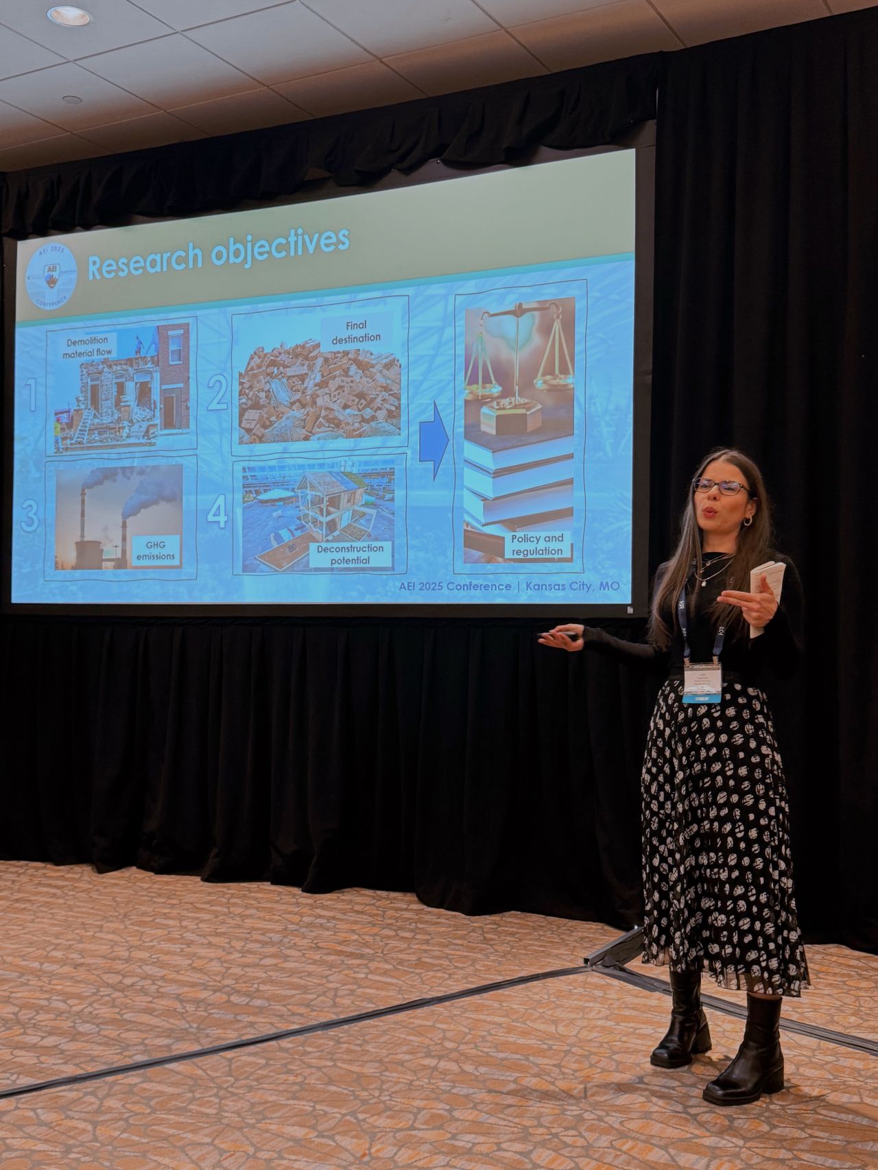 Today Cagla Keles represented our Department of Civil, Architectural & Environmental Engineering at Drexel University and presented her CIRCLE lab research at the #AEI2025 conference. I couldn’t be prouder of her! She absolutely killed it. Cagla talked about her post-demolition materials flow analysis in Philadelphia — the first study of its kind in the U.S.…