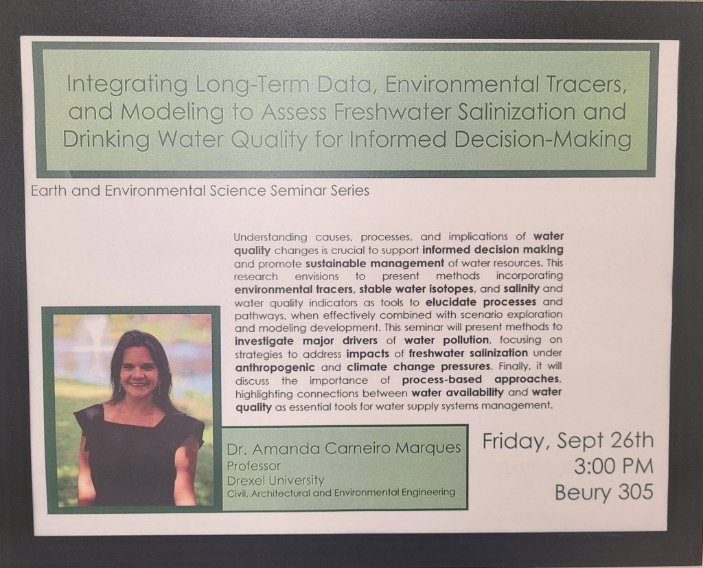 Dr. Carneiro Marques was an invited seminar speaker in the Earth and Environmental Science Seminar Series at Temple University College of Science and Technology