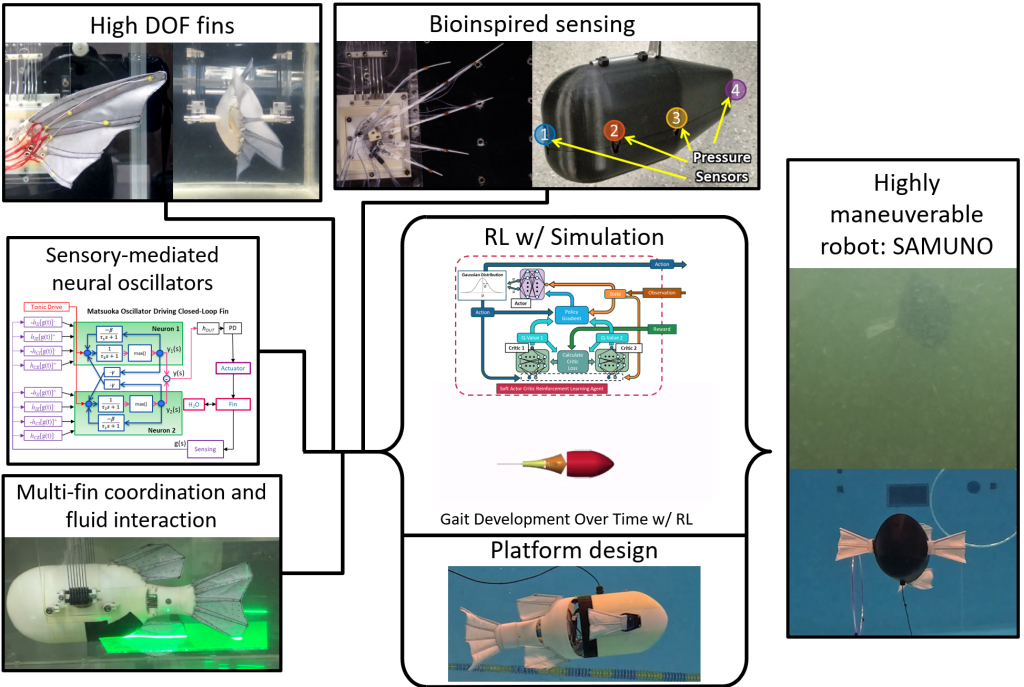 - Integrating sensing and state estimation methods to investigate how local and global sensory information can inform control decisions for robots operating in dynamic flow environments.