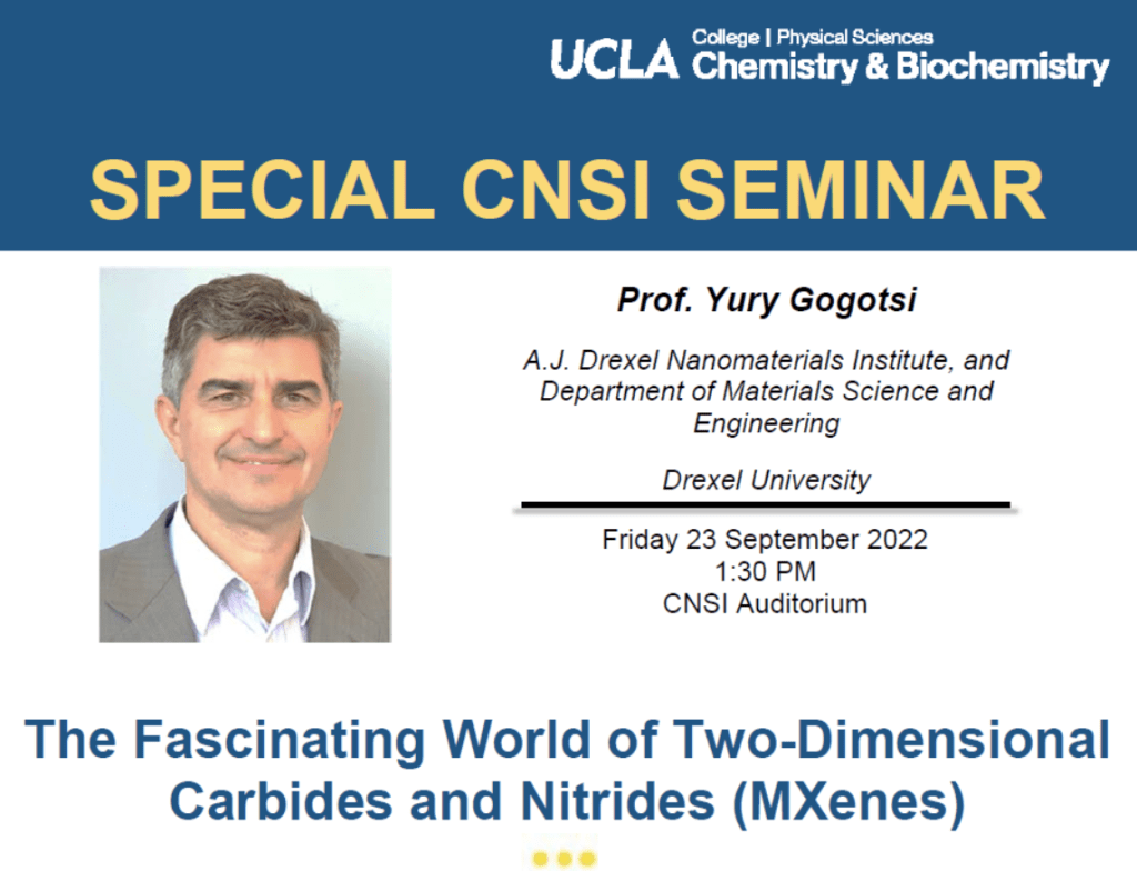 Professor Gogosti will give a seminar at UCLA on Friday, September 23, 2022 on the latest developments in the field of MXenes.