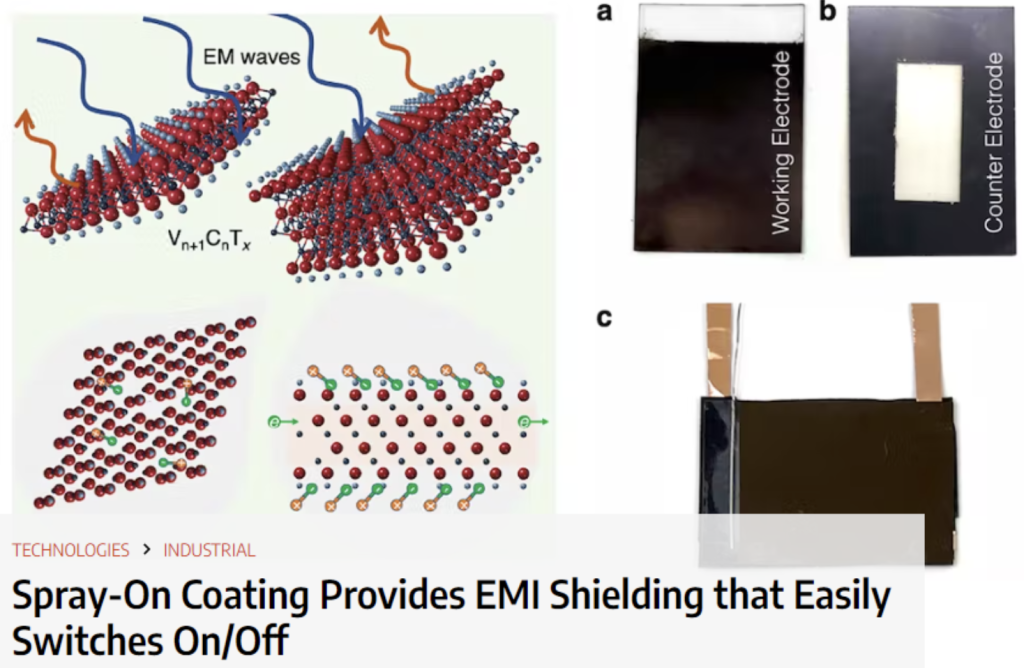Our work on MXenes for tunable EMI shielding was featured again in Electronic Design in an article titled, “Spray-On Coating Provides EMI Shielding that Easily Switches On/Off”.