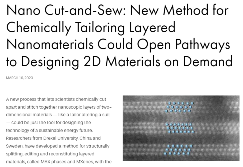 Drexel Press Release: https://drexel.edu/news/archive/2023/March/chemical-scissors-MXene-MAX-phases?fbclid=IwAR3ghTUpQqOmSicPIi6YxG2fC3jt6HMQ2JdInouLo7KBlmAU8ApkKIrAzD4#.ZBXx2h7xmGA.facebook