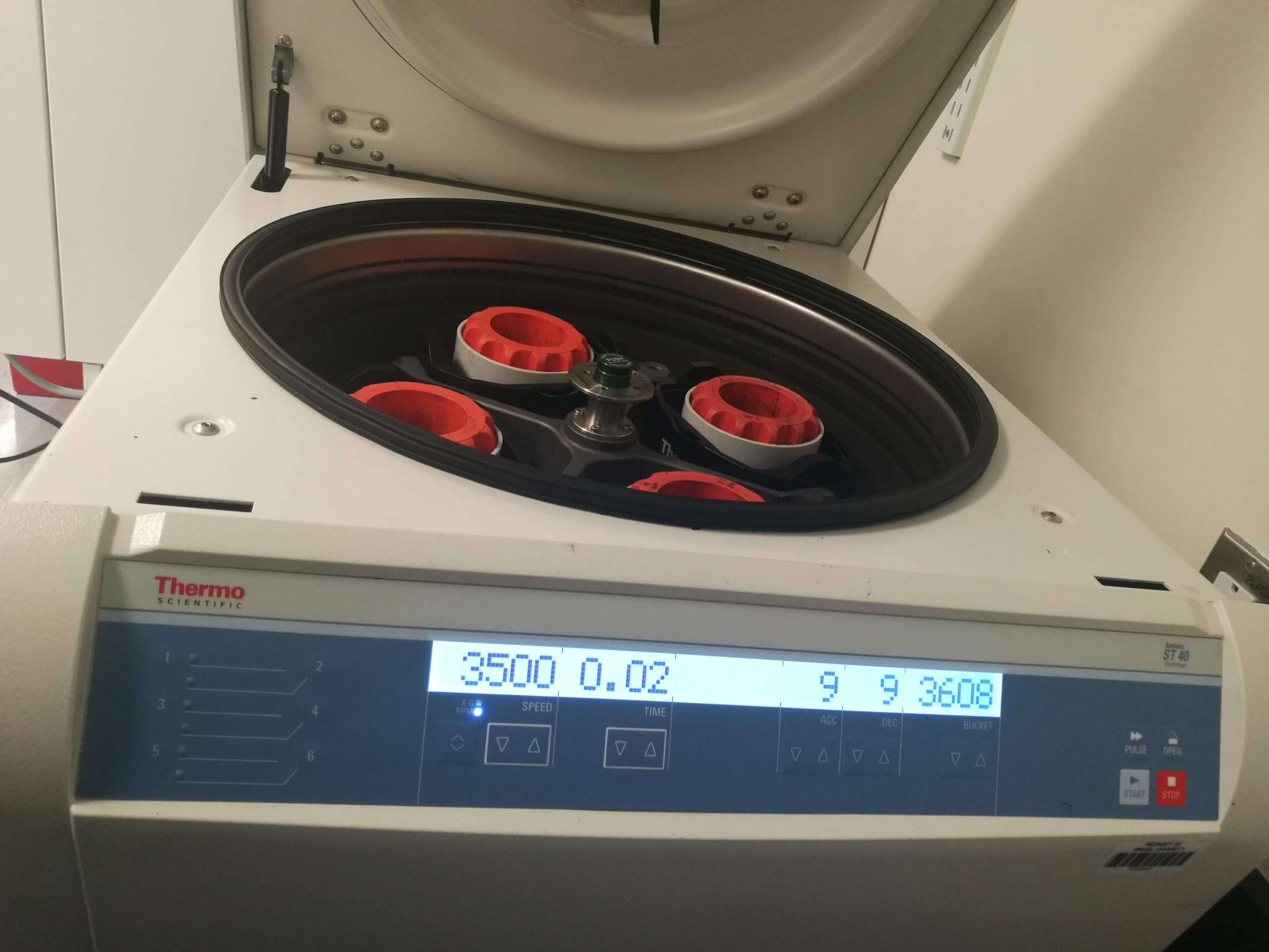 Purpose: Used for low speed (up to 5,000 rcf) centrifugation using 4x 500mL bottles, 4x 175mL tubes