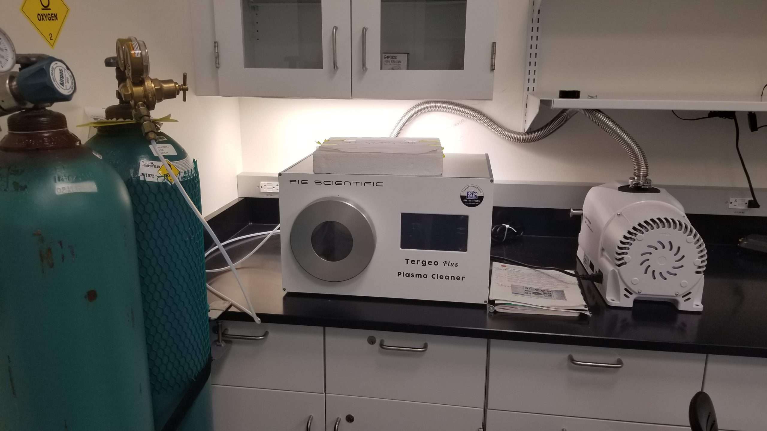 Purpose: Oxygen and/or Argon Plasma Cleaner (Tergeo Plus Plasma Cleaner, Pie Scientific) with dry pump capable of reaching 200 mTorr or less pump pressure. It is used for substrate cleaning and functionalization.