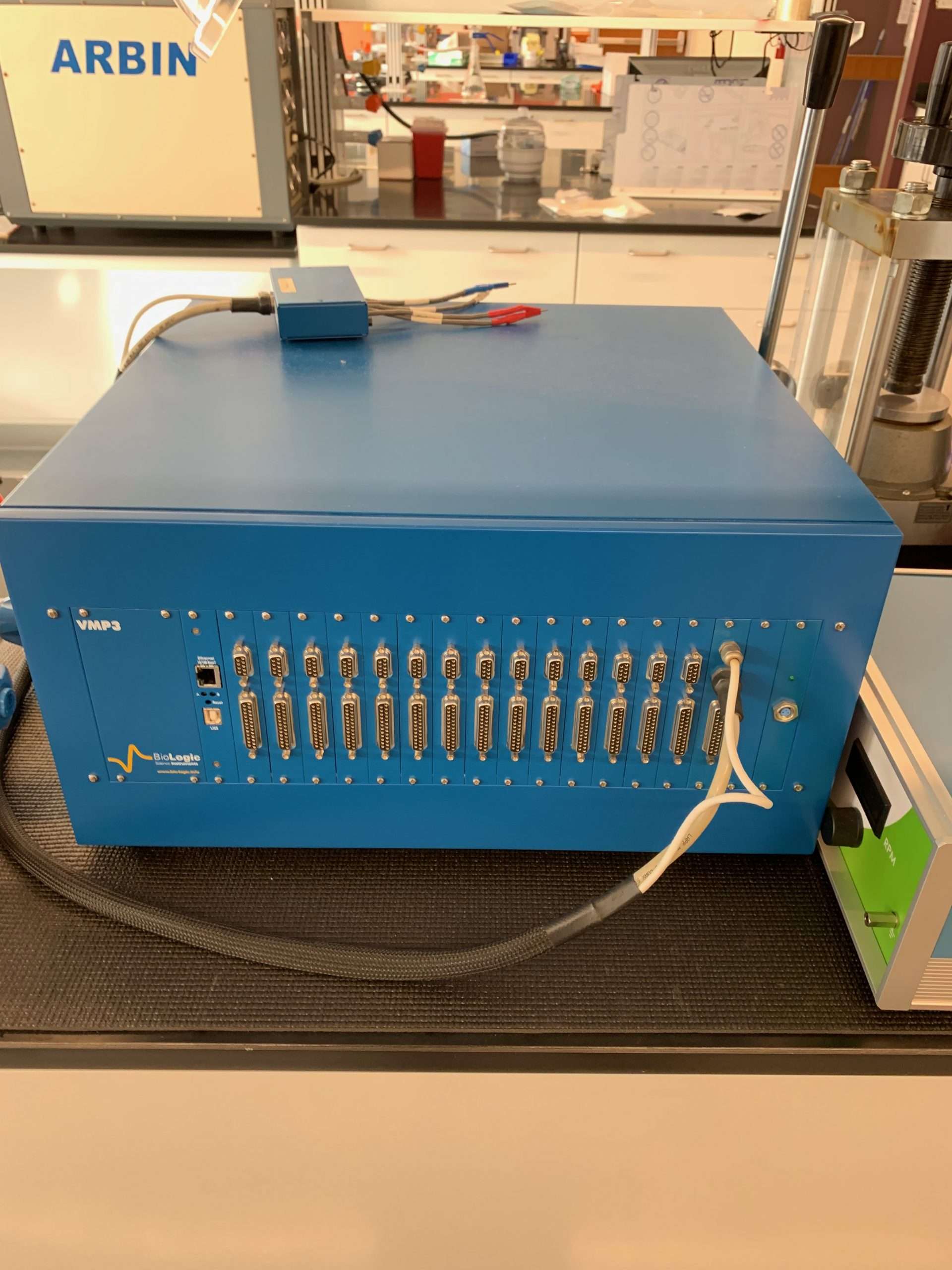 Purpose: Several multichannel potentiostats (Bio Logic VMP3) are available in the laboratory, which are equipped with high standard, impedance, high current, and low current channels. Potentiostats are used for characterizing the electrochemical properties of materials and devices, such as supercapacitors, batteries, and electrocatalytic materials.