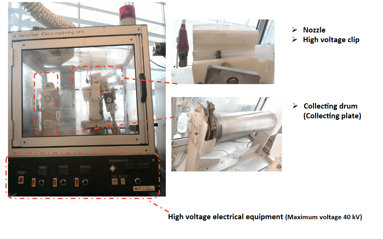 Purpose: Electrospinning unit (NEU Kato Tech Co, Ltd.) with a maximum voltage applied of 40 kV.