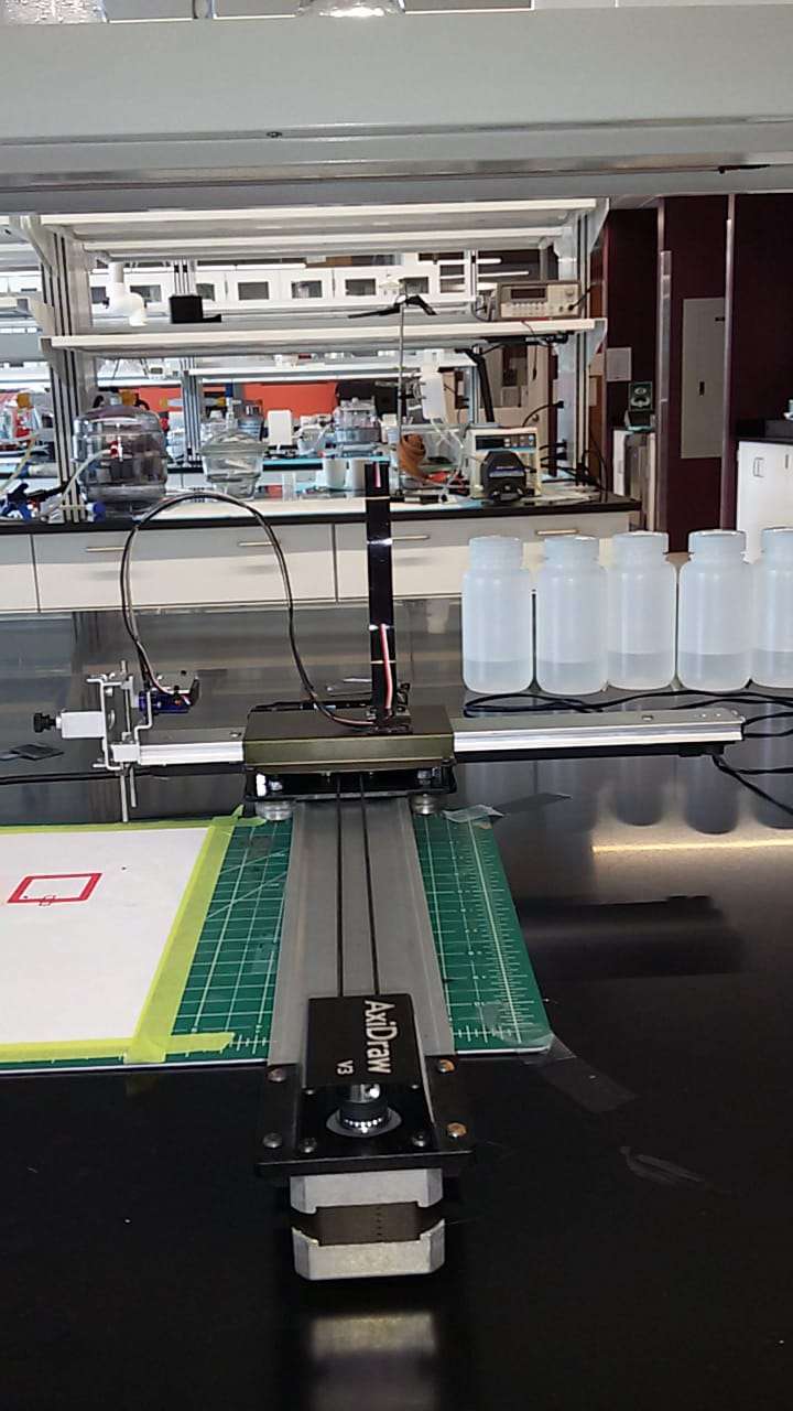 Purpose: Axi-draw can move in X-Y directions and can be loaded with Pen to draw or sketch desired patterns. It is a useful tool for direct writing and patterning of functional devices on a wide choice of substrates including paper, glass and plastic.