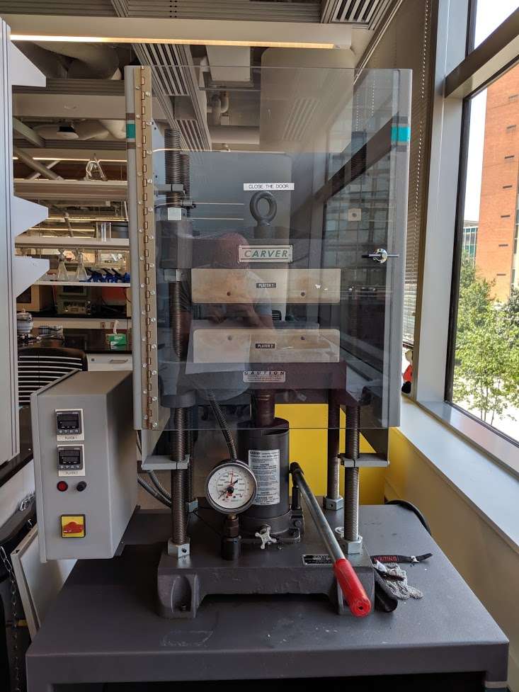 Equipment: Several press systems are available in the laboratory, including Carver 4122 hot press, which is a 12-ton manual hydraulic lab press with digital heated platens.
