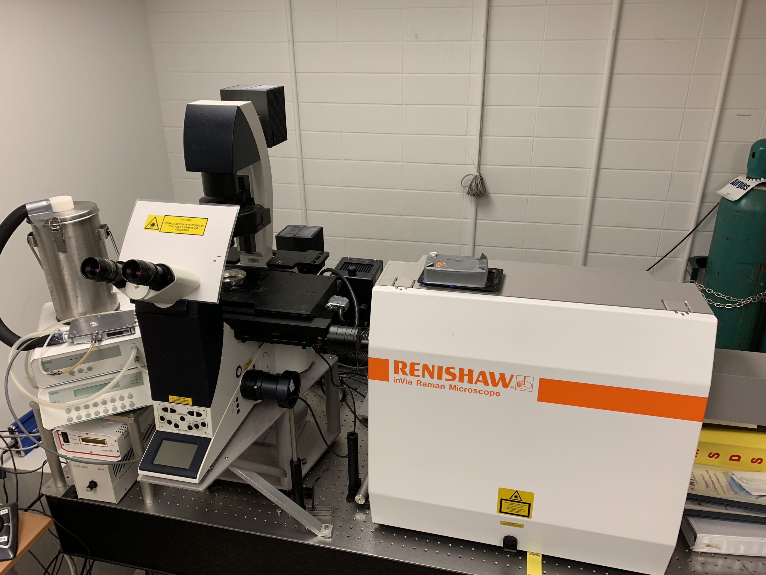 Purpose: Renishaw Raman inverted microscope equipped with 4 laser lines (488 nm, 514 nm, 633 nm and 785 nm) and 4 different objectives (20x, 55x long distance, 63x and 100x), as well as cooling stage (Linkam) which is able to operate in nitrogen atmosphere (77K – 873 K) and BioLogic system for in-situ electrochemistry testing. It is used to analyze vibrational properties of materials.