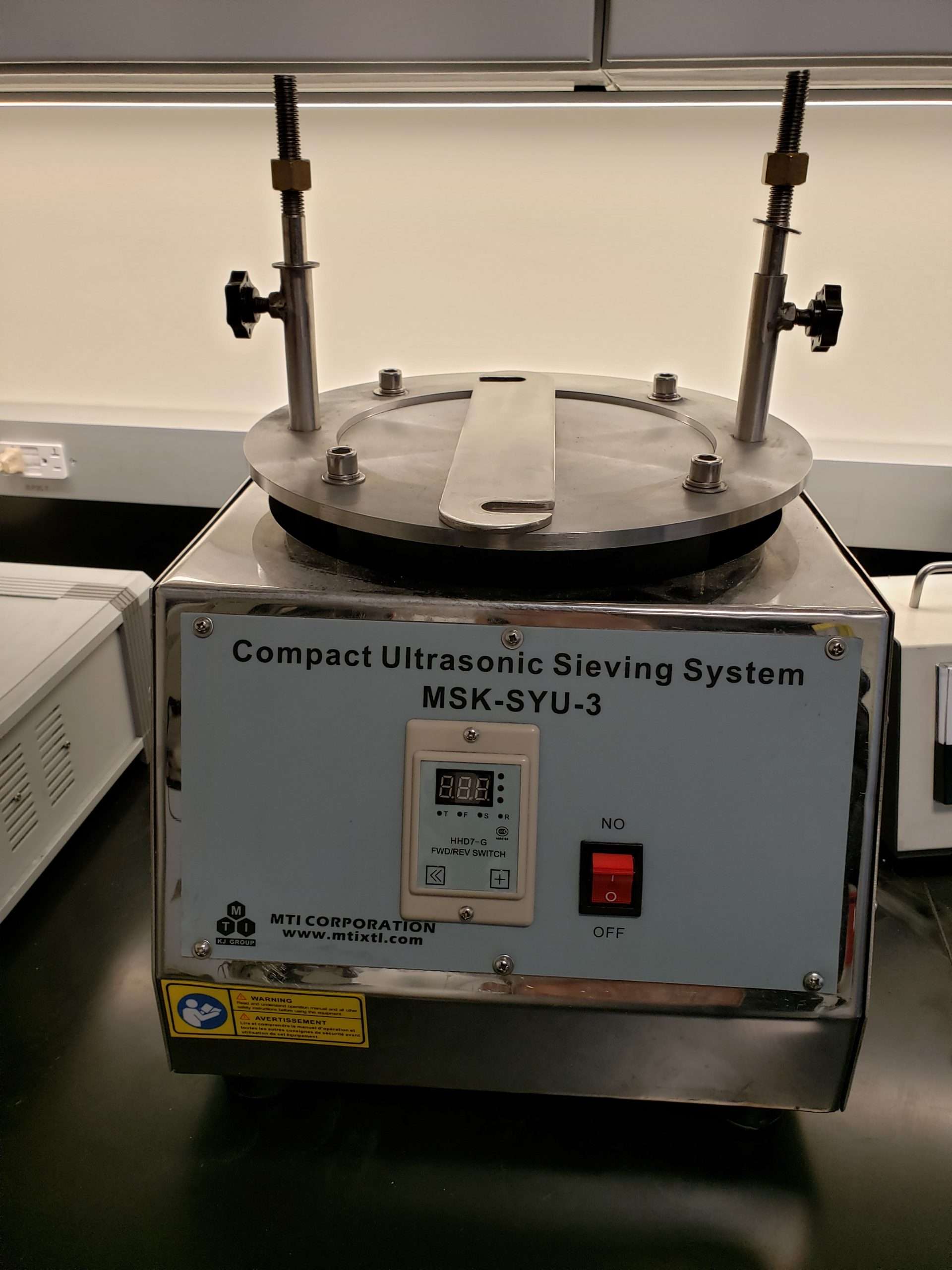 Purpose: Automated system for sieving powders with the ability to stack multiple sieves in series.