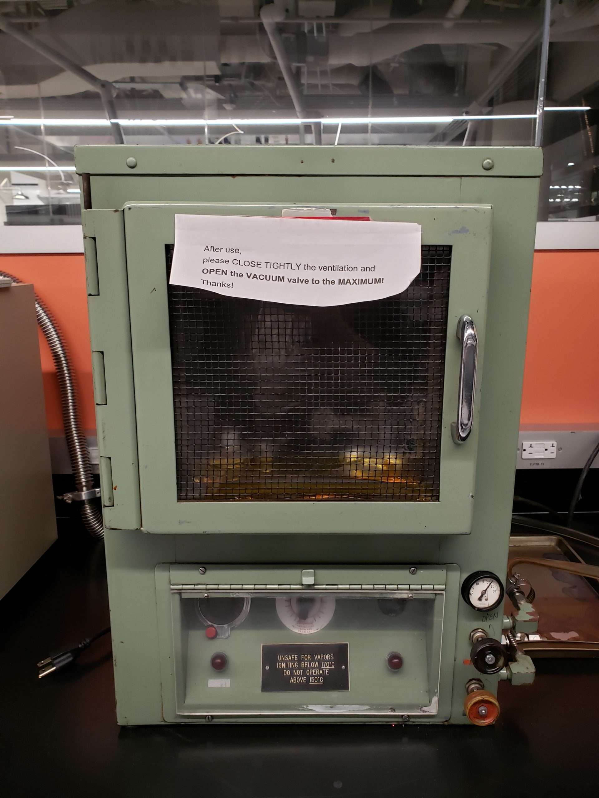 Purpose: For drying glassware and other large parts. Maintained at constant 70 C° at ambient pressure